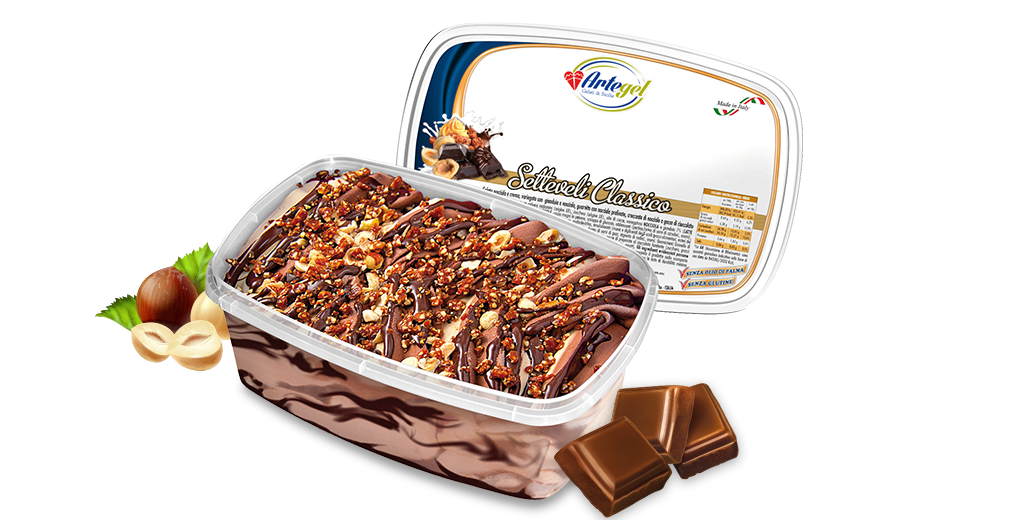 Morbido e cremoso, arricchito da una croccante granella di nocciola. 2 L - 1100 g